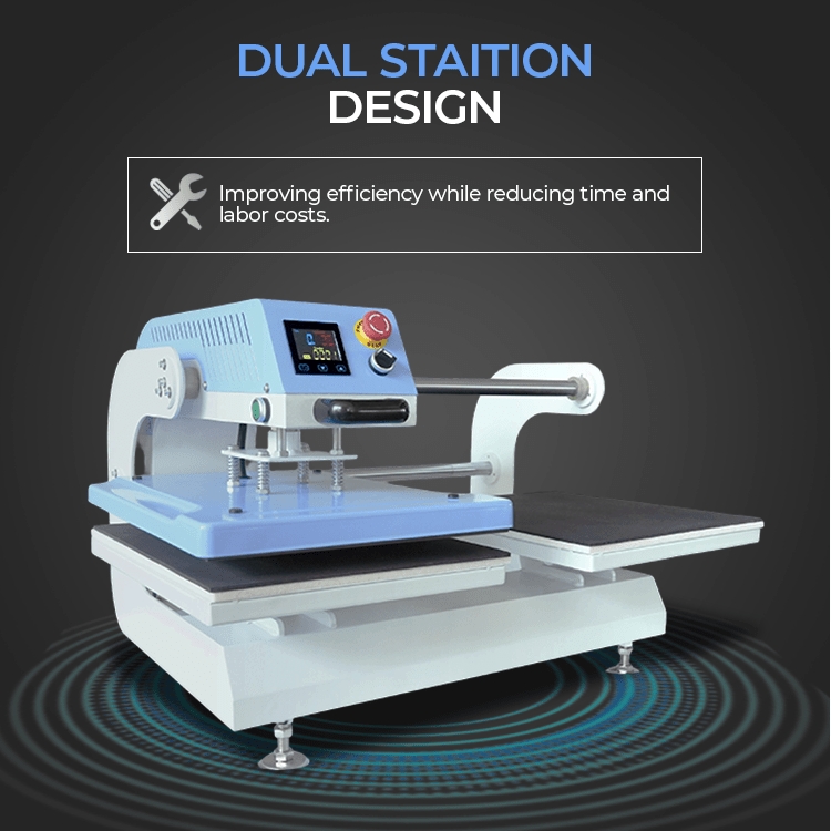 GS-QD6 er en pneumatisk roterende varmepresse utviklet for effektiv og fleksibel produksjon av tekstiler, kopper, musematter, puter og andre flate produkter.