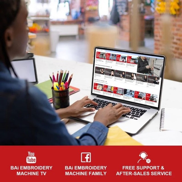 I tillegg til at vi som forhandler stiller opp for deg når du måtte ha behov for assistandse, så følger det selfølgelig med bruksanvisning. I tillegg til dette vil du få tilgang til undervisnings- og vedlikeholdsvideoer, på fem språk: kinesisk, engelsk, fransk, spansk og arabisk. Alt er dette er selvsagt gratis. Vi vil også sørge for at du ikke har noen bekymringer helt i fra utpakking av maskina, igangkjøring og helt fram til maskinen er klar til bruk. Dersom du trenger ytterligere hjelp, er teamet til fabrikken tilgjengelig for en videosamtale med deg. Du vil også tilgang til flere fasiliteter som BAI sin egen YouTube-kanal, Live broadcaster, blogg og Facebook-grupper.