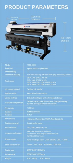Ta produksjonen din til neste nivå med Sunika 1900-3200, en industriell storformat sublimeringsprinter designet for høy presisjon og driftssikkerhet. Med doble originale Epson I3200-A1 printheads og intelligent luft-tørkesystem leverer denne maskinen eksepsjonell kvalitet og effektivitet, perfekt for tekstiltrykk, sportsbekledning, bannere, flagg, interiørdekor og mer.