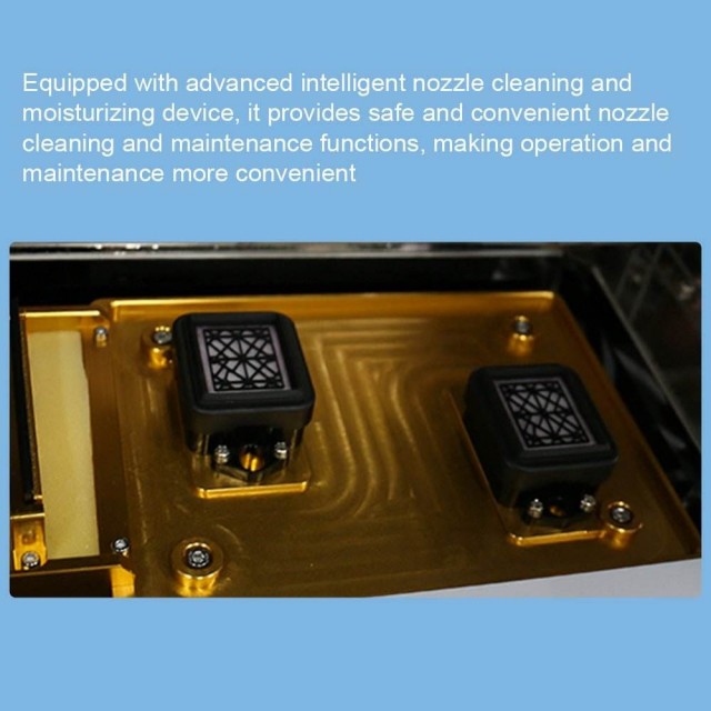 - Automatisk rengjøring og dysevedlikehold med fuktespray-funksjon