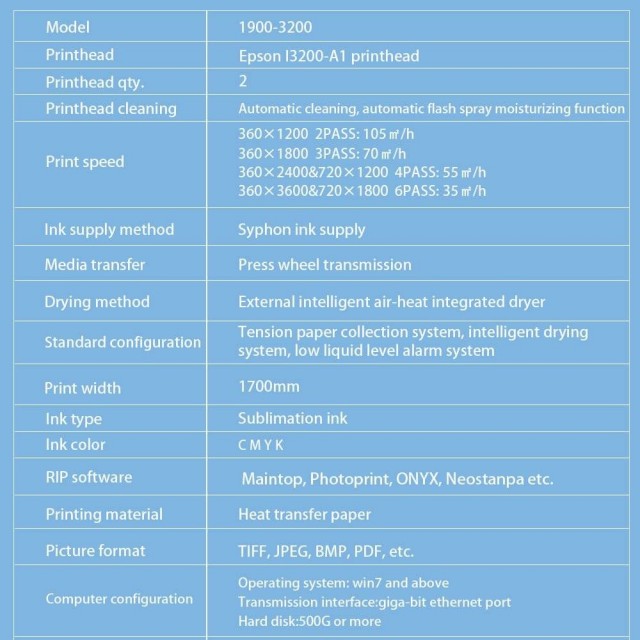 - Kompatibel RIP-programvare: Maintop, Photoprint, ONYX, Neostanpa