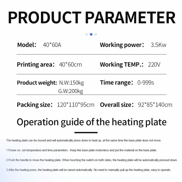 - Allsidighet i Bruk: Fra tekstiler til keramikk, denne maskinen håndterer ulike materialer med letthet. Med et trykkområde på 0-8 kg/cm² og en temperaturområde fra 0 til 399°C, tilpasser GS-QD2 seg enkelt til dine spesifikke behov.