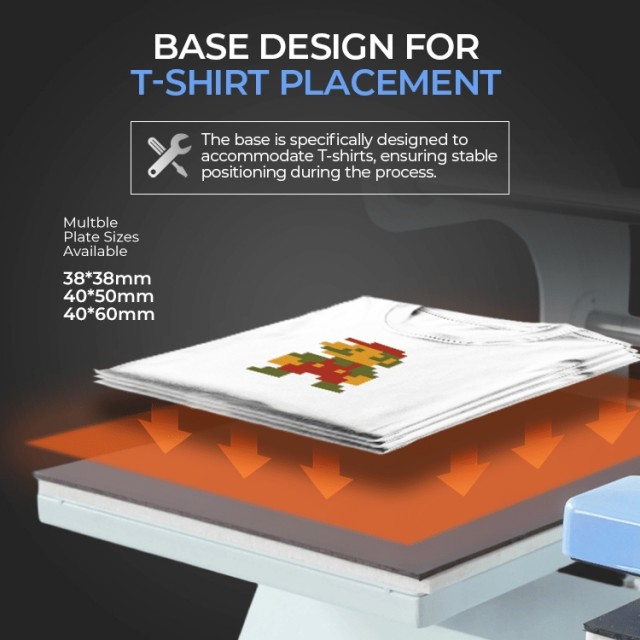Pneumatisk Dobbel Varmepresse er ideell for T-skjorter, hettegensere, musematter, capser, bager og andre tekstilprodukter.